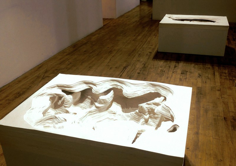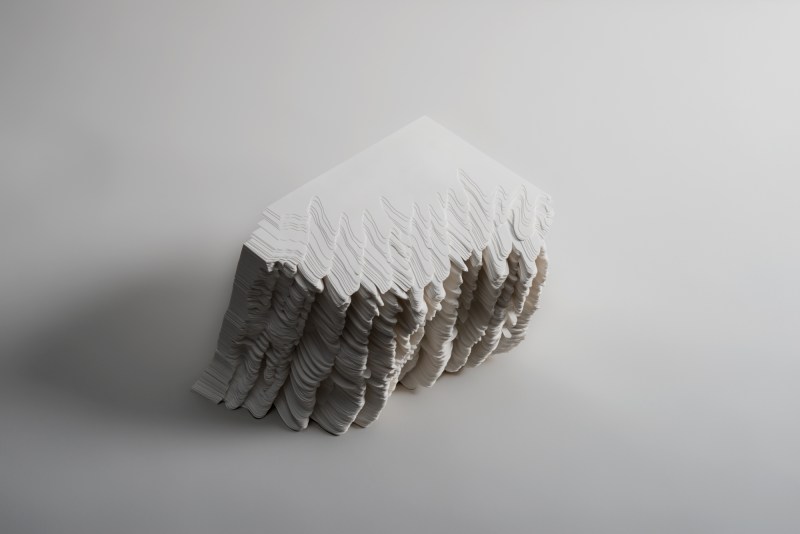 Our gaze follows the contours that punctuate the paper sculptures created by artist Noriko Ambe: Curves, holes, ridges appear, as well as waves or mountain peaks, mysterious caves and cavities. Paper has become a territory, a landscape, a field open to the viewer’s imagination.